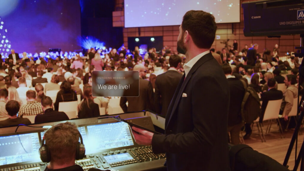 Komplette Event-Konzeption der Gold-Prämierten Konferenz. Mit modularer Bühne (52 LED-Panels), KI-Co-Moderatorin und immersiver Inszenierung.