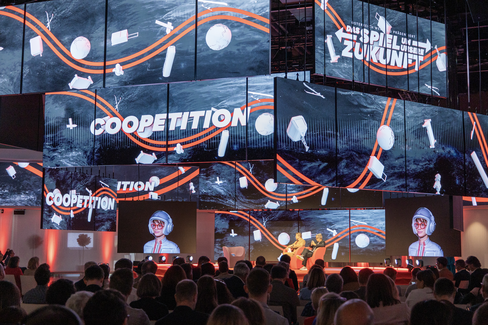 Eine bemerkenswerte Neuerung war der Einsatz einer KI-basierten Co-Moderatorin, die mithilfe einer maßgeschneiderten GPT-Lösung absolutes Experten Know How auf die Bühne brachte und eine neue Form des Dialogs ermöglichte. Zusätzlich förderten interaktive Elemente wie Umfragen, Quizformate und personalisierte Fotostationen die aktive Beteiligung der Teilnehmer:innen – sowohl auf der Bühne als auch darüber hinaus.