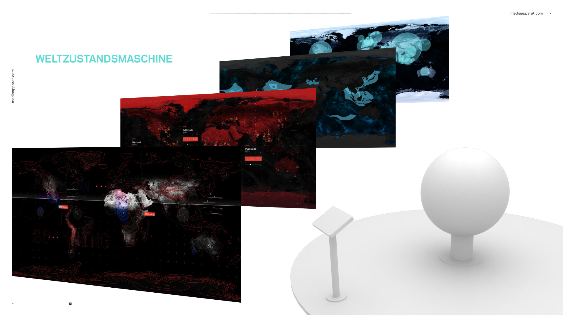Media Apparat war in enger Zusammenarbeit mit Christian Bauer und André Heller sowohl an Konzeption, Planung als auch Umsetzung der Ausstellungsinstallation beteiligt und durfte in weiterer Folge vier Exponate konzipieren und gestalten.